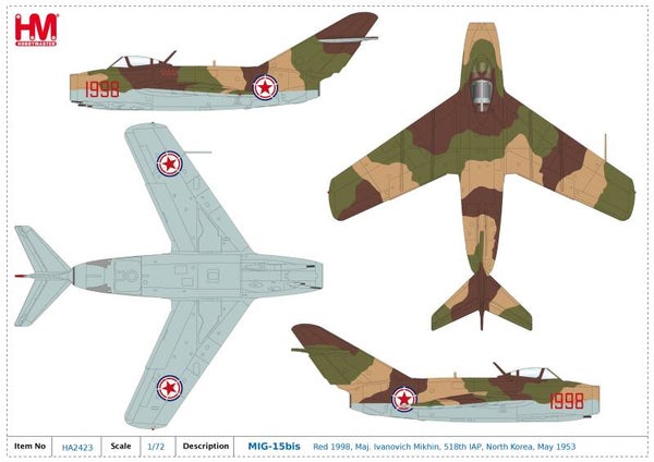 Mikoyan MIG-15bis Fagot Red 1998, Maj. Ivanovich Mikhin, 518th IAP, North Korea, May 1953