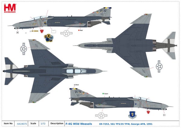 Mc Donnell Douglas F-4G Phantom II Wild Weasel, 69-7253, 561 TFS/35 TFW, George AFB, 1991